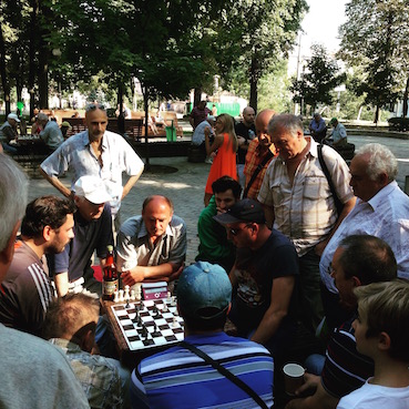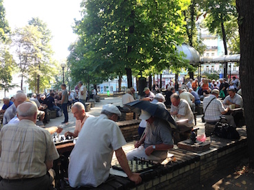チェスをかなり本格的に勝負しています(なかには賭けてる方も...苦笑)。