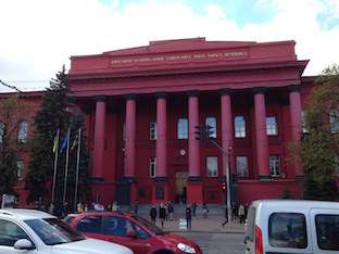 で、この公園は、真っ赤な建物で知られる大学、その名も「タラス・シェフチェンコ記念キエフ国立大」の真ん前にあります。