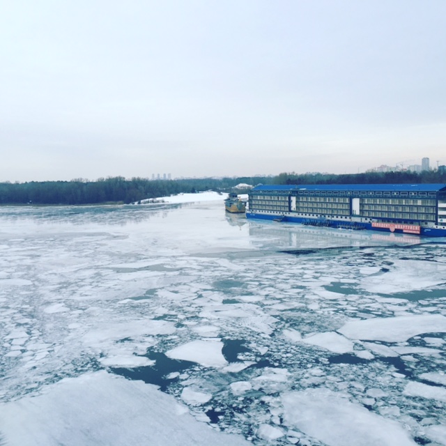 そしてハイドロ・パークを後にし、初めてドニプロ川の橋を歩いて渡りました。雪道を苦労してわたりましたが、その甲斐あってなかなか迫力のある写真がとれました。