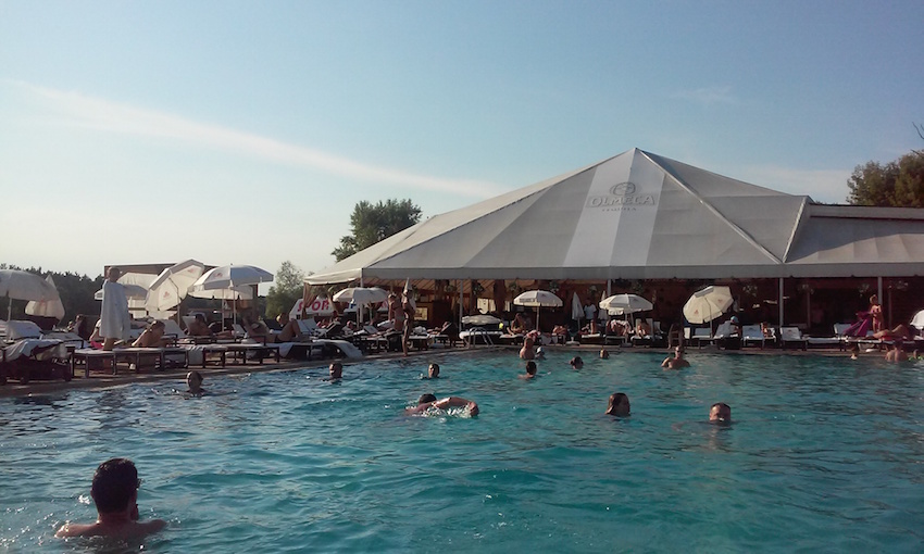 セキュリティ・チェックを受けて入場すると、大きめのプールがあり、その周りに日焼けや読書をしに来た人がデッキチェアでゆっくりしています。DJがいい感じに音楽をかけ、バカンス地でよく見かけるあの風景が広がっています。