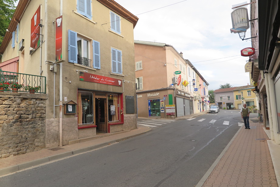街のメイン通り。小さなスーパ、薬局、カフェ、パン屋が。