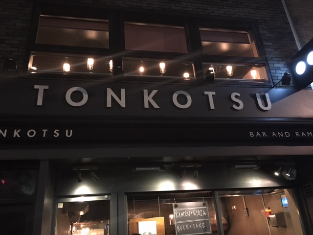 初日。とりあえず翌日にこちらに留学中の後輩と「一風堂」に行くことは決まっていたので、別のラーメン屋を探していると偶然ひっかかった「TONKOTSU」。