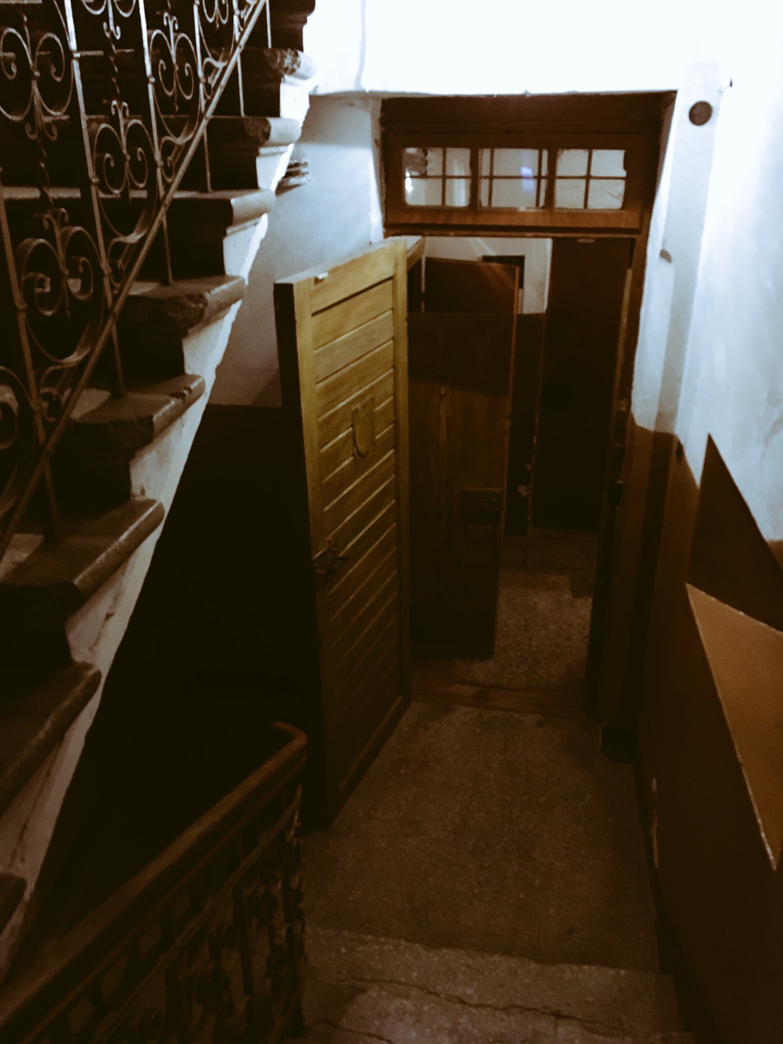 そして、ついに私が最も恐れていた場所、KGBの地下房へ。夫はラトビアのKGB博物館も訪問したのですが、その際のKGB地下房は予約制で入れなかったらしく、ぜひとも俺の代わりに!と言われたので、気が進まないものの、薄暗い階段を下りてゆきます。