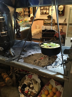 バニツァ(写真左手前の丸い天板のやつ、パイ生地に、塩気の強いチーズとほうれん草を混ぜて焼いたもの)は文句なくおいしい!ビールが欲しい!スートラシュ(ライスプディング、ミニテーブルの手前に載ったプラスチックのカップに入ったやつ)はほのかに甘くて、うっすら獣の味だけど、おいしーい!乳製品好きにはたまらないラインナップです。