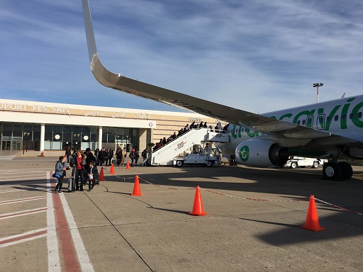 初日の出を見届けて、フェズ空港へ向かい、Trans Aviaに乗り込みます。