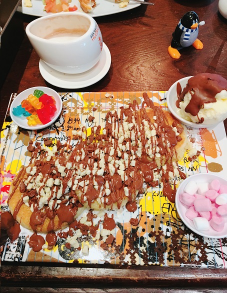 O家が揃ったところで、念願の朝ごはん!イスラエルの有名なショコラティエ、マックス・ブレナーで朝食をとることにします。店舗はいくつかありますが、我々はロスチャイルド通りのお店へ。