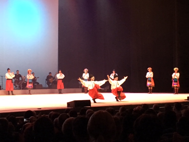 ウクライナでの公演ということもあって、男女ともにウクライナの民族衣裳でコサックダンスなどこちらの踊りを披露していました。ウクライナ人、これ見て嬉しくなって感激していました。ウクライナとグルジア、仲良いですからね。
