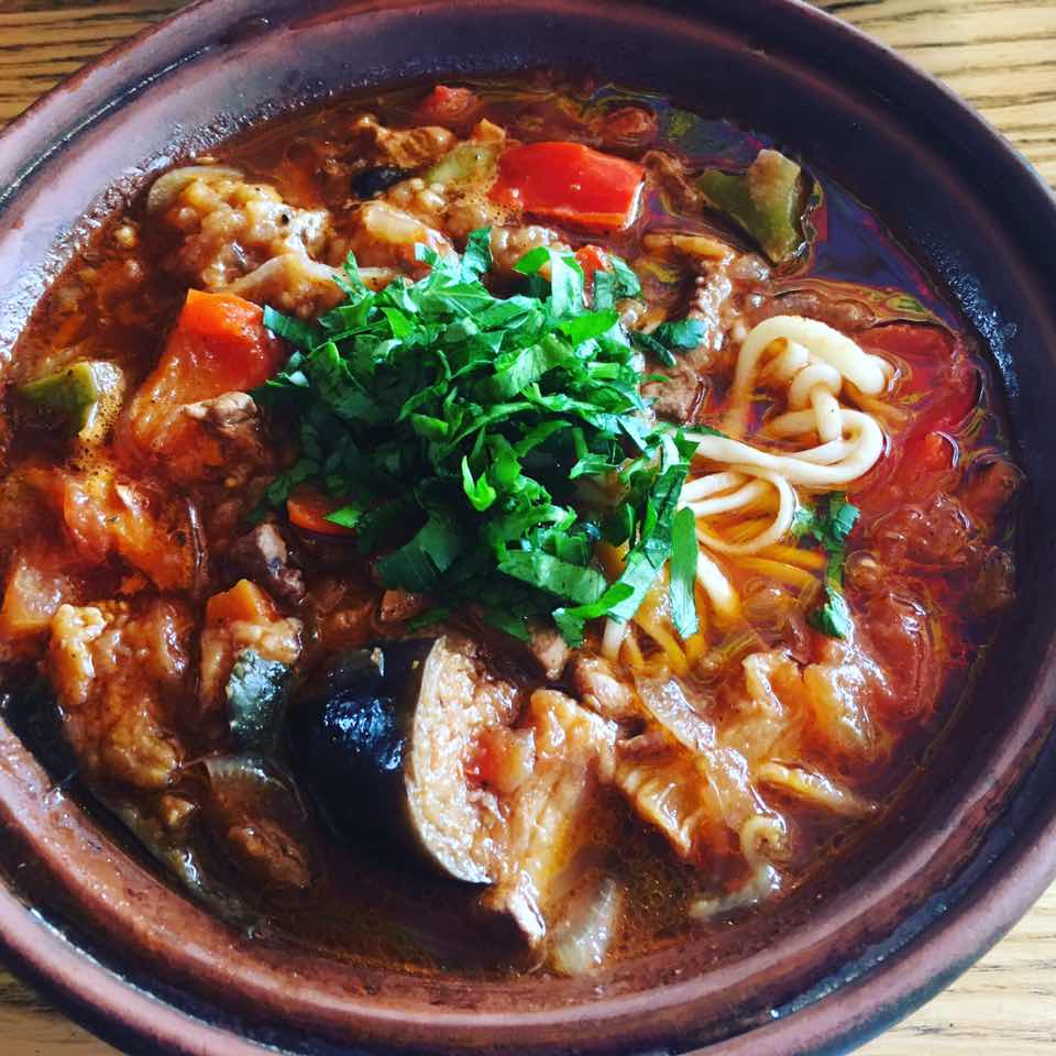 そしておまけ。これは最近急増中のチェーン店の「チャイハナ・バザール」のラグマン。「チャイハナ」ではこれまでお茶しかしたことがなかったのですが、上記お店にいった翌々日、どうしても「食べたくて、食べたくて、震える〜」状態だったので改めてラグマンを注文。ここのラグマンは、野菜など具だくさんでしっかりした味付け。面の量も多くて大満足でした。