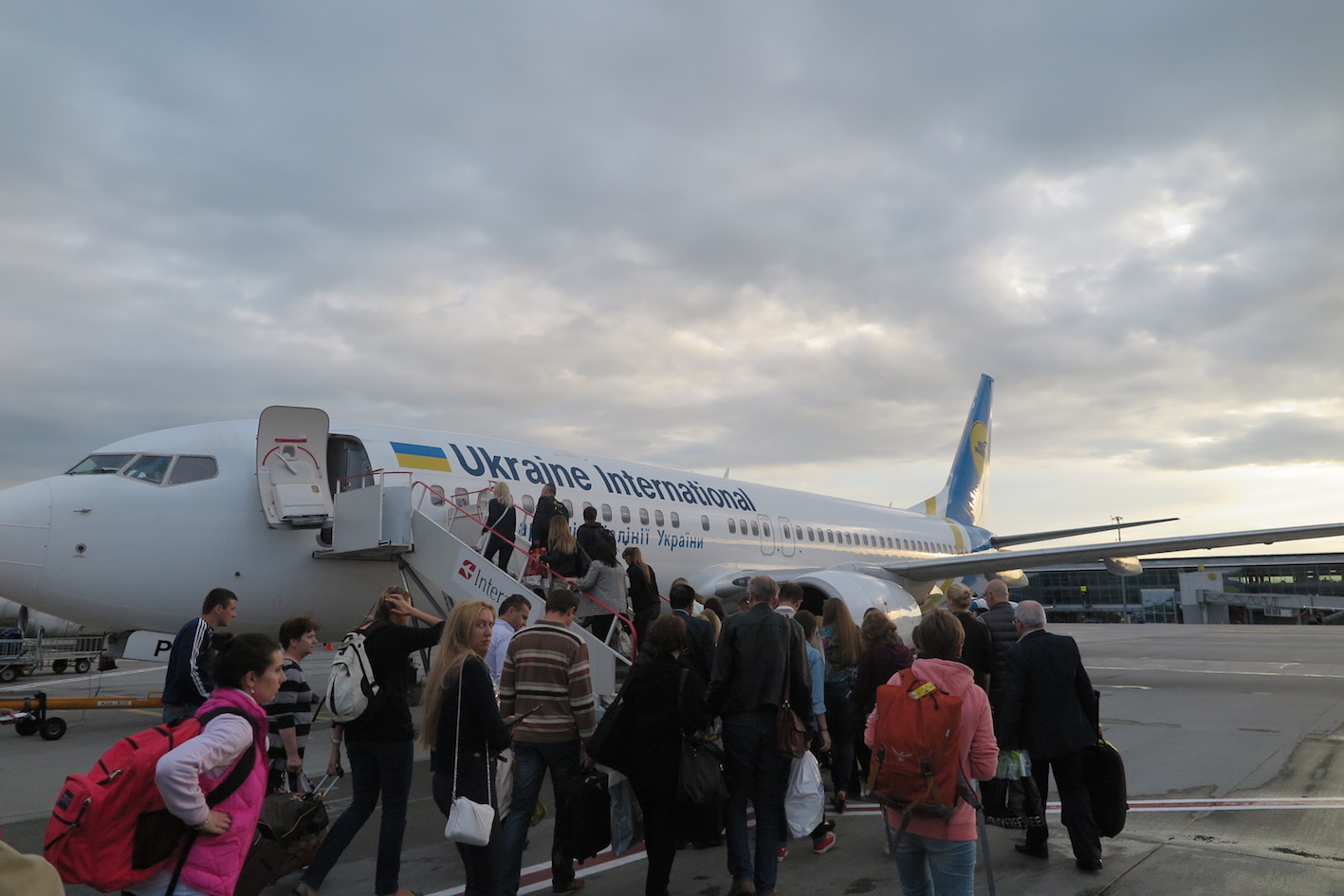 夜19時55分発の便。はじめての「ウクライナ国際航空」。聞いたこと無いけど落ちへんかな。でもキエフから国内線のるなら、さけて通れないよね。