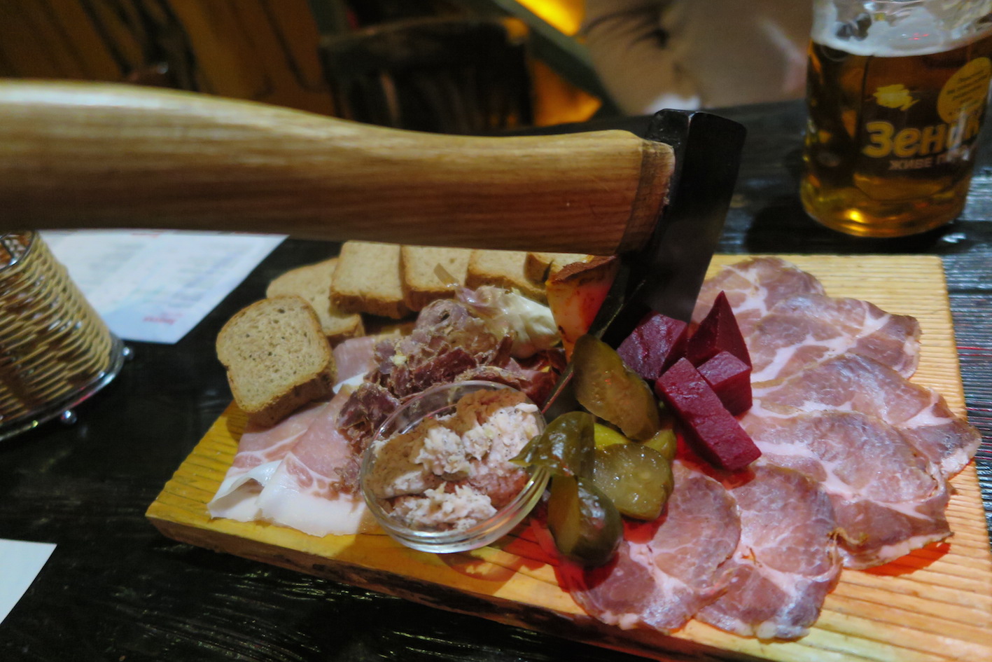 ウクライナ民族主義者で主に構成され、ソ連・ドイツに対抗したUkranian Insurgent Army(ウクライナ蜂起軍、赤と黒の旗がトレードマーク)の最後の隠れ家というコンセプトでやっているお店です。