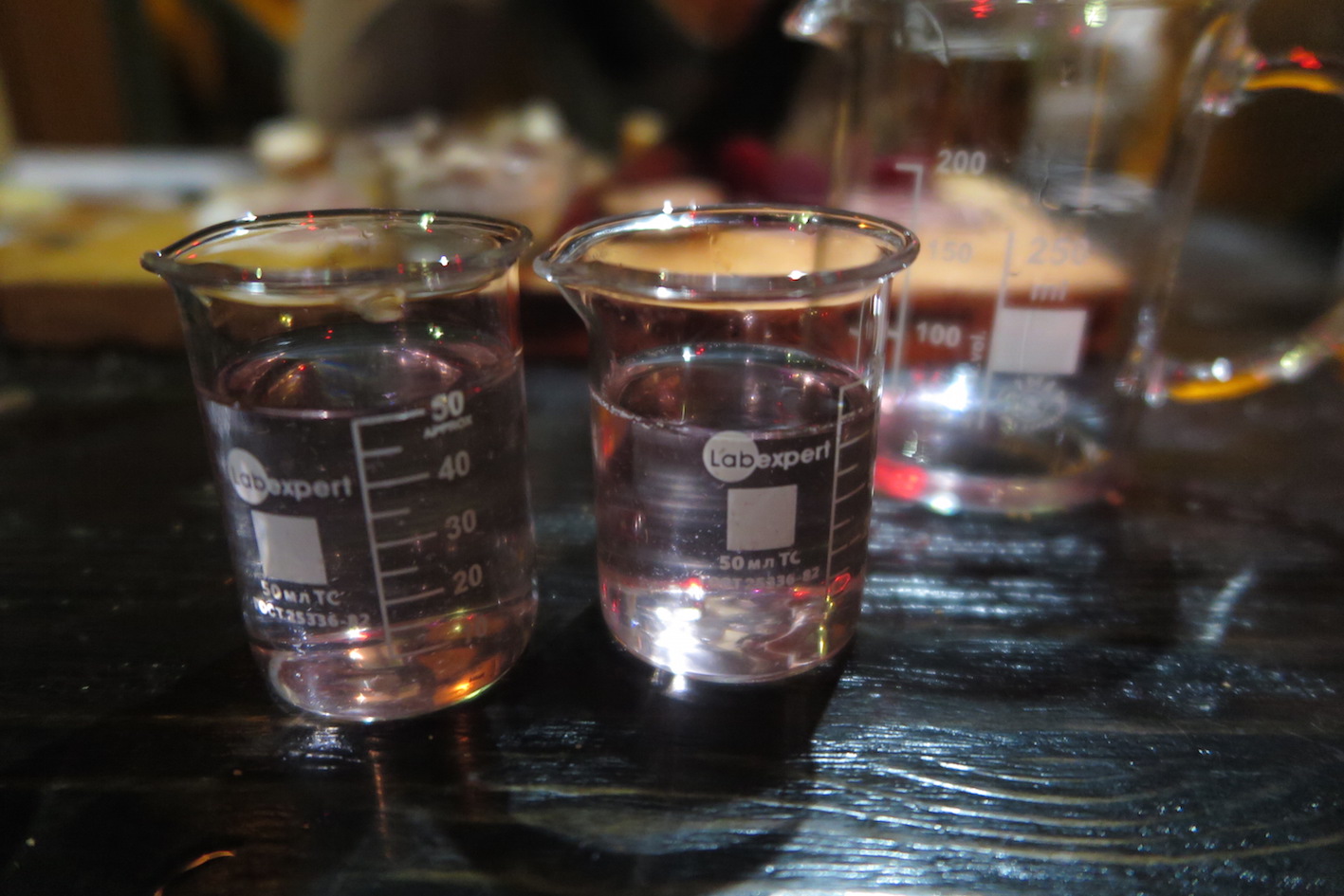 乾杯のウォッカ。ビーカーできました。