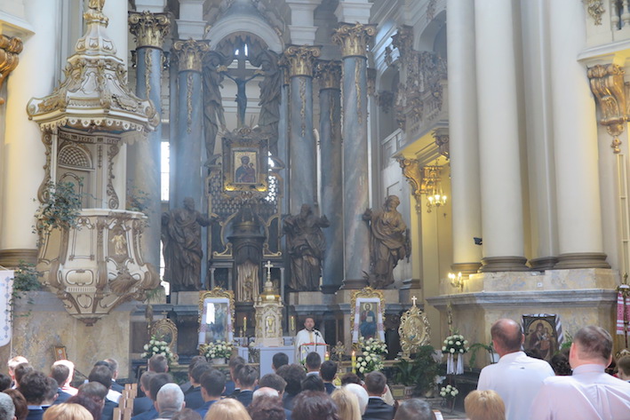 以下は、バロック様式のドミニカ聖堂。偶然結婚式がとり行われていました。明らかにキエフで見られる玉ねぎ教会とは違いますね。この教会、戦後ソ連に接収され、1970年代に「宗教と無神論の博物館」に変えられたそうです。信者は辛かったやろうなぁ。