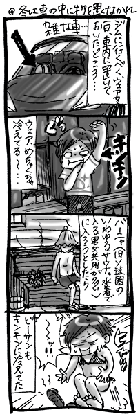 冷蔵庫から出したようなウェアと水着とビーサン。一人小さく悲鳴を上げました。