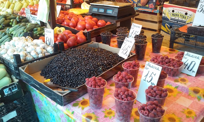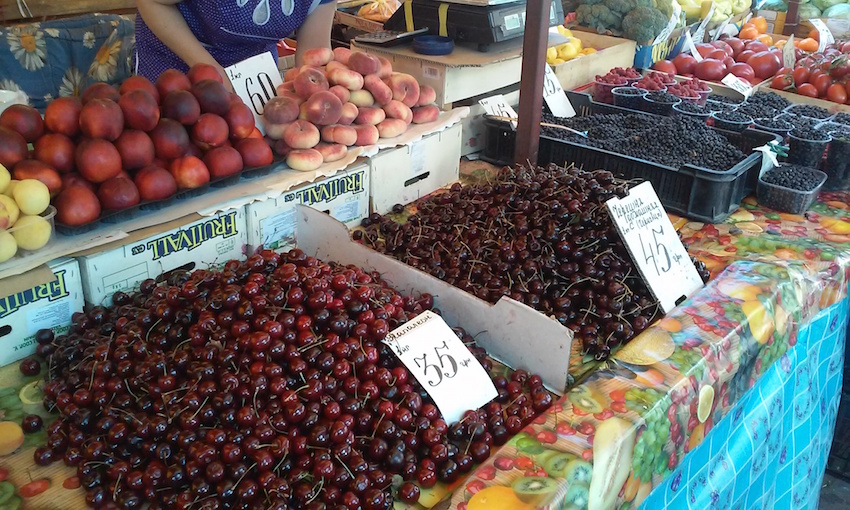 でも、ここはウクライナです。安いし、新鮮やし、美味しそうやし、つい何が売っているか見て回りたくなります。この時期は市場まで行かなくとも、街なか(例えばメトロの駅周辺)で、おばちゃんが販売しています。だから、街を歩いていてお腹が減ったら、ちょっと買って、ぱくり。