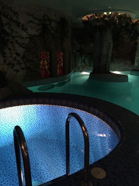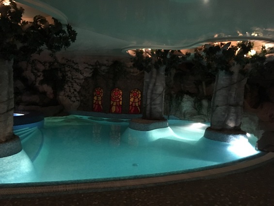 地下に降りていくと、なんだか南国の雰囲気。立派なプールが!ほどよい暖かさ。