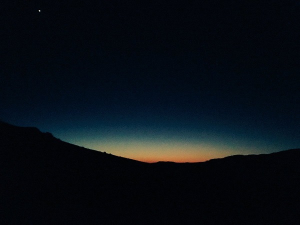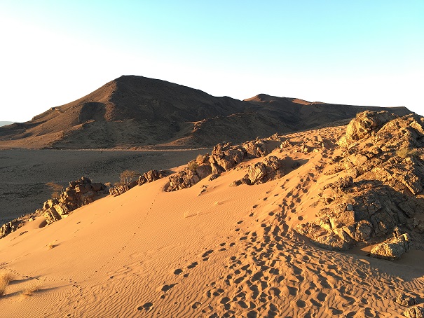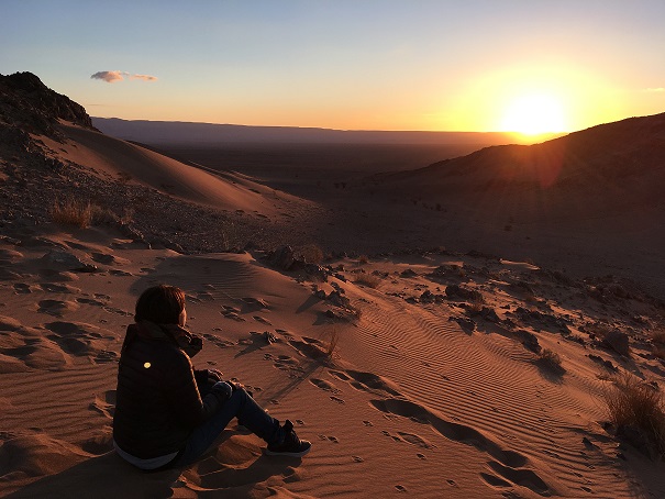 えっちらおっちら、砂漠の山をのぼり(これがめちゃハード。みんなぜーぜー言ってた)、ベストポジションを陣取って、朝焼けを見守ります。私も座って眺めます。