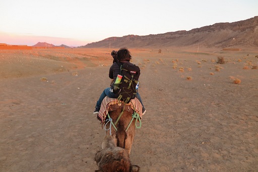 らくだに乗りながら見た夕日は、今まで見た夕日の中で1,2位を争うほど美しかったです。