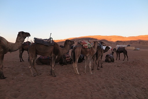朝食を食べたら、再び、30分程らくだに乗って、ミニバンが待つ集合場所へ向かいます。