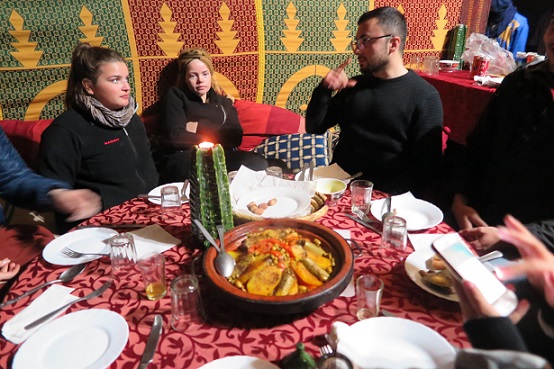 巨大なタジンを分け合います。