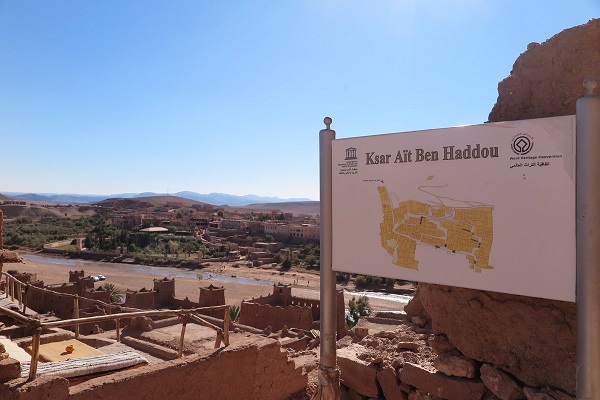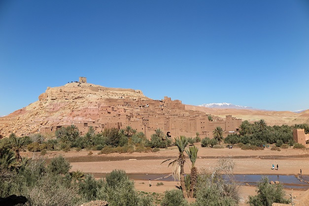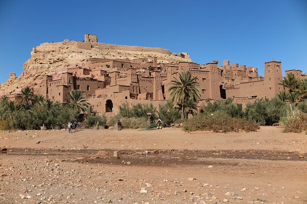 そうして、マラケシュへ戻るドライブの途中、ワルザザードの街の近郊にある、世界遺産のアイット・ベン・ハッドゥに寄ります。こちらは町全体が砦のようになっており、入り組んでいて、敵の侵入を防ぐために、入口は一つしかないそうです。