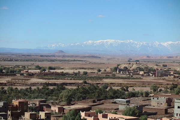 遠くにはアトラスの山脈が、頂に雪をかぶっている姿がうっすらと見えます。