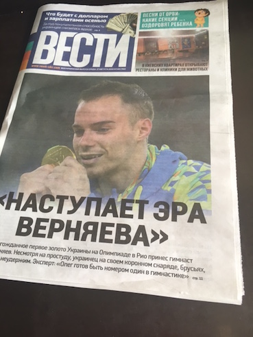 そのベルニャエフ選手が体操男子種目別平行棒で金メダルを獲った翌日のこちらの新聞。