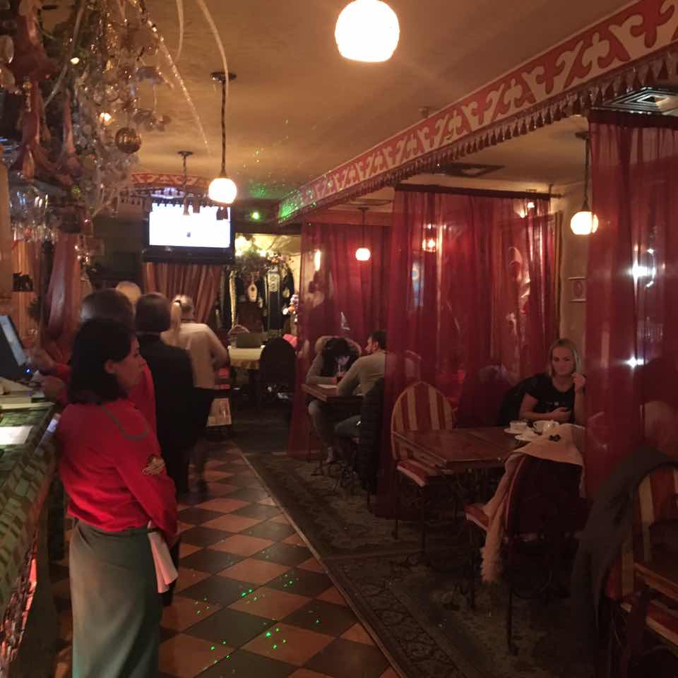 店の雰囲気は中央アジアや中東のような雰囲気ですかね。キエフにしては珍しくお客さんがいっぱい。繁盛しているようで料理にも期待が持てます。