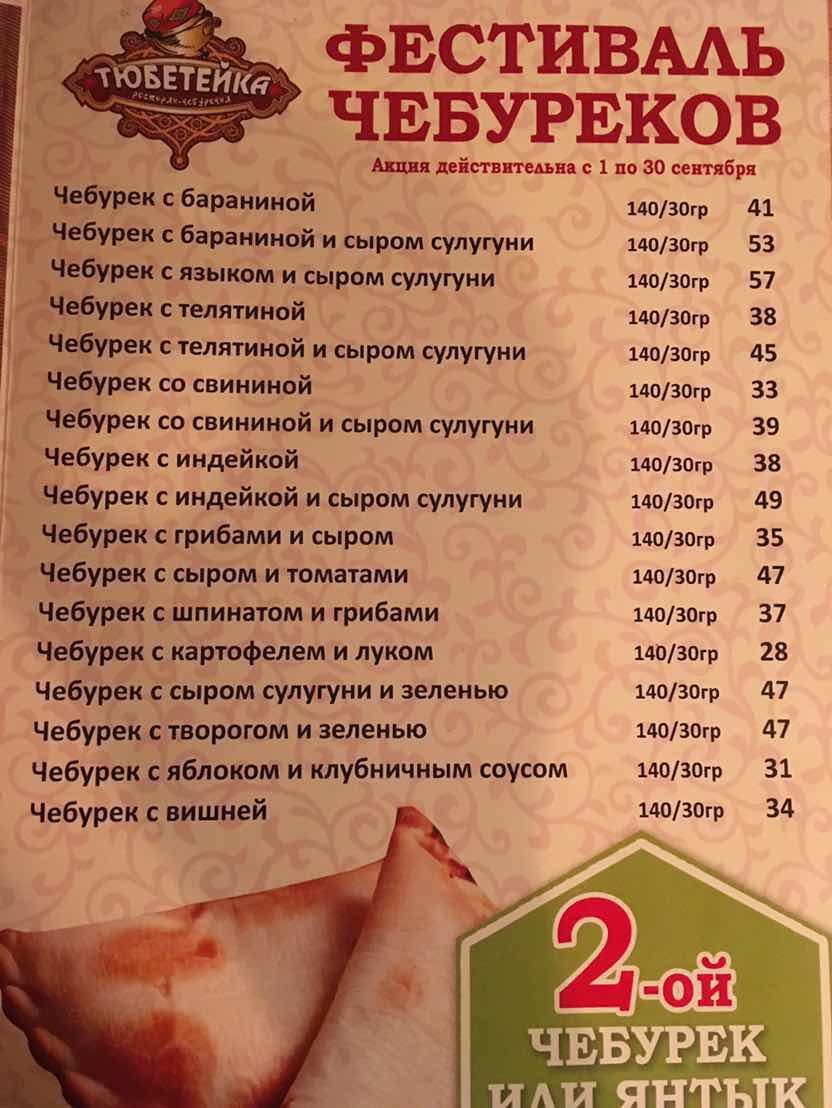 その名は「Тюбетейка на Тарасовской」。クリミア・タタール料理のチェブレキが専門のお店のようで、ウズベク料理のプロフなんかもおいています。
