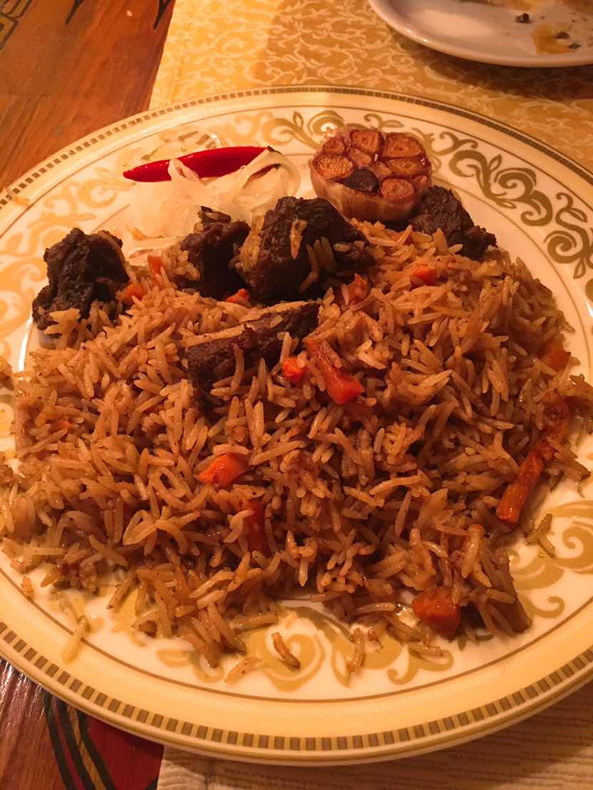 そしてプロフ!なかなかいけてました。本場にはかなわないものの、しっかり味付けされており、ご飯もぱらぱら。ガーリックの丸焼きも美味しかったです。