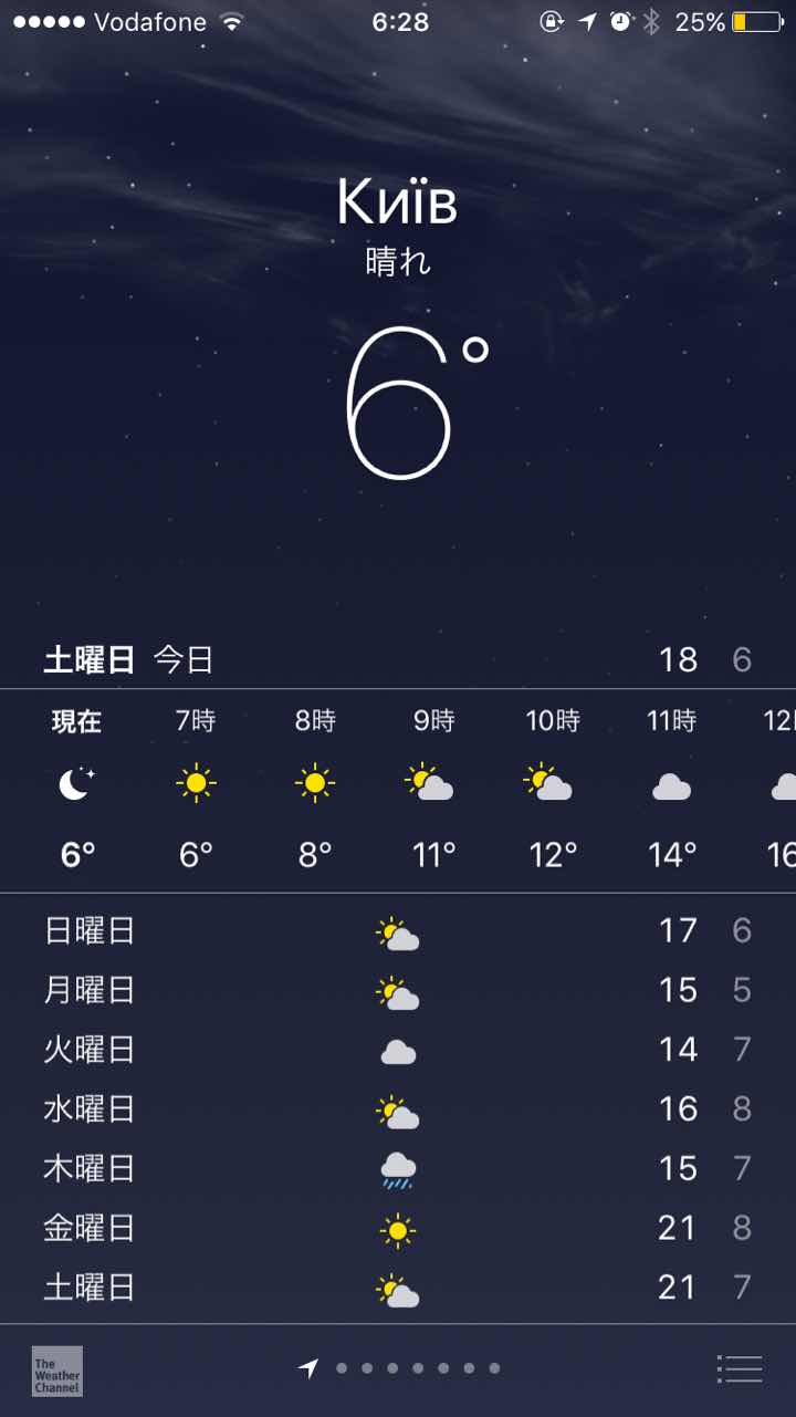 現在、朝は6℃。日中10℃ほどです。上の写真では21℃とか予想していますが、ここのところ実際には15℃以上見ていません。ですから、もうすでにダウンコートを着用し始めました。