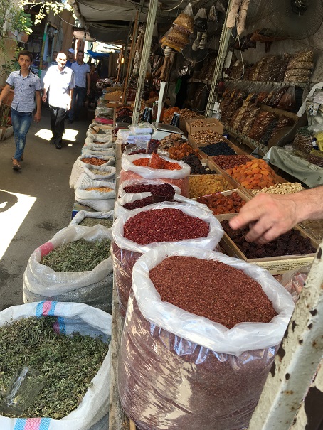 生鮮食品だけでなく、スパイス屋さん(日本で買うとめちゃくちゃ高いサフランが激安だった)や、ピクルス屋さん、金物屋さん、ペットショップ等々、色んなお店が所狭しと並んでいます。金物屋さんにはサモワールが置いてあったりして、あー、やっぱりアゼルもそっちの文化圏なのだな、と思ったり。