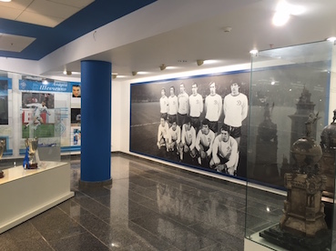 そして実は今回初めてはいったディナモ・ショップ。暗くて今まで開店しているのかわからず貼っておりませんでしたが、ちゃんと営業していました。しかも試合のない日もチケットなしで普通に買い物できるそうです(笑)その横にはディナモ・ミュージアム。これまでの栄光が展示されています。