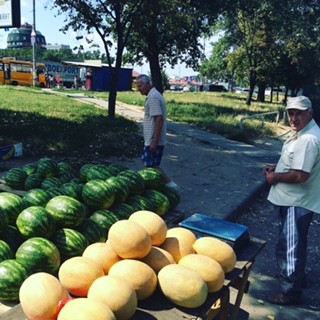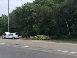 ちなみに郊外へ出ると、幹線道路沿いにこういうふうにスイカが並べられて、うられています。
