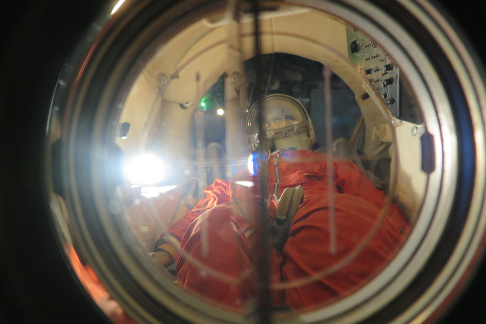 あれ、カプセルのなかに宇宙飛行士がいるよ!