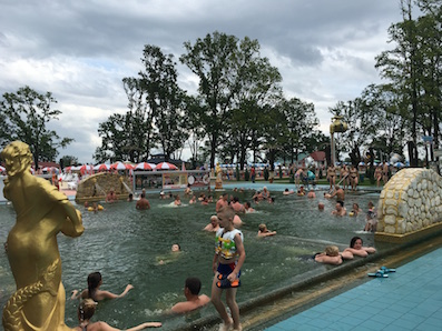 この辺りでは、ハンガリーのナンバープレートもかなり見かけました。国境を越えて、ウクライナの安い品物を手に入れ、安い入場料で温泉を入りに来ているハンガリー人も多いのではないでしょうか。次はムカチェボ!