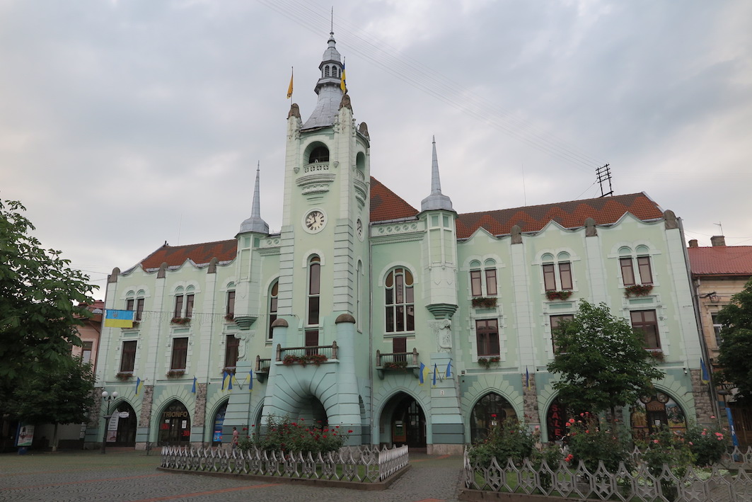 その前にムカチェボ市内を少し散策。ムカチェボ市役所。市役所自体がカラフルで可愛いですね。