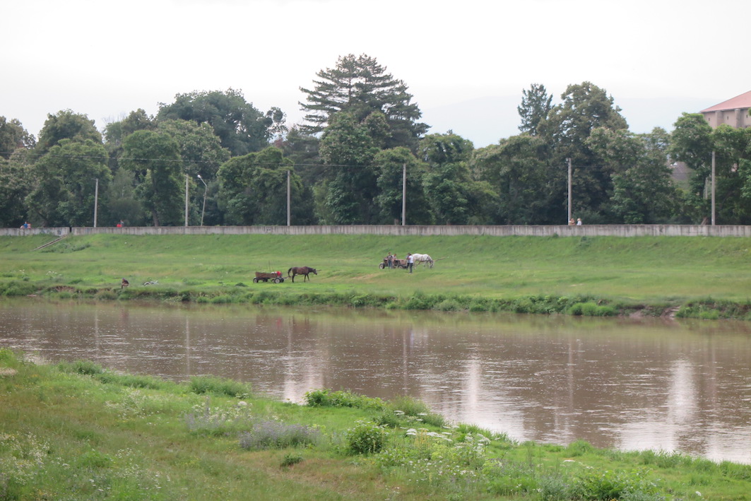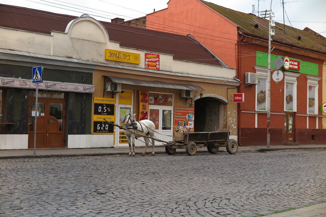 でも街としてはユジュホロドよりも小規模。牧歌的な風景。馬が観光用ではなく..普通にお仕事させられています。