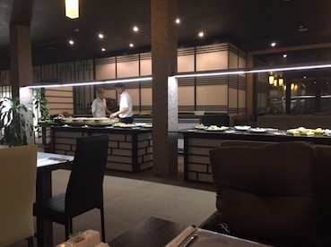 なんと夜一人385UAH(1570円)!ウクライナ価格にしては少々高めですが、これだけ食べて、歌って、騒げたら大満足ですよね。多少味に難があっても文句は言いませんという感じですが、焼き肉は美味!寿司もどこかのチェーン店よりも美味しいです。しかもランチタイムに行けばもっと安く、250UAH(1021円)ですからかなりお得です。
