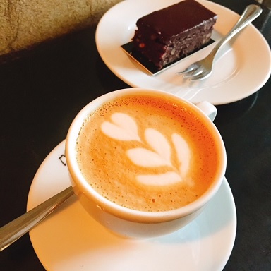 こちらはインペリアル・カフェのカフェオレ。もうカップとコーヒーと泡の色合いがなんとも美しくて見とれてしまいます。皇室のマークも素敵。