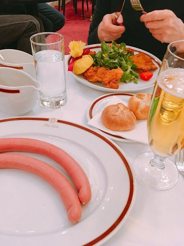 お腹もすいていたので、ビールとシュニッツェル、ウィンナーソーセージも頼んじゃいました。