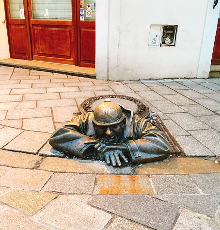 いたるところにユニークな銅像がいます。このおじさんはランドマークな様です。