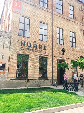 寒いので、広場にある「メッサーシュミット・カフェ」なるカフェでコーヒーを1杯。