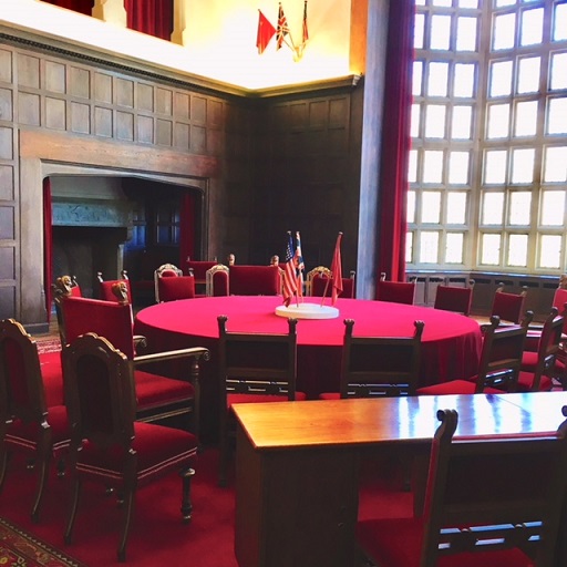 イギリスはチャーチル、アメリカはトルーマン、ソ連はスターリンが、肩を並べて囲んだ会議用のテーブルです。