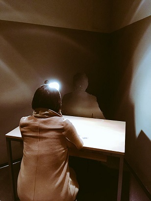 尋問室の入口には「時間は無限にある」的なフレーズが書いてあります。こわ!!
