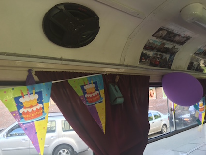 乗車してみると「happy birthday」の装飾がなされていました。何周年か記念なのでしょうか。