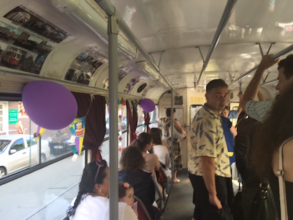 トラム内の様子。こんなパーティ仕様、この車体だけなのか。