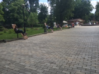 キエフ国立大が目の前にあるので授業終わりの学生さんも休憩しています。