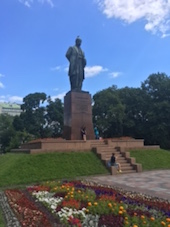 タラスさんの頭に鳩が乗っちゃっています。最近公園の色合いがよくなったのと、道路が舗装されて気分が良いです。