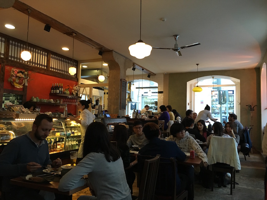 お店の雰囲気はとてもよく、内装もオシャレ。上の映像によると芸術家の旦那さんがやっているとか。店に入るとわくわくが増します。日本人のすごく親切な店員さんが、完全に日本語のメニューをもってきてくれました。日本酒も焼酎もある...迷わずみんな焼酎!一日強い日差しのなか歩いたのでいっそう美味しく感じますね(写真が無くてすいませぬ)。