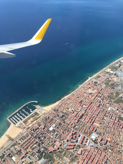 到着直前、上空からのバルセロナ。期待が一気に高まりました!